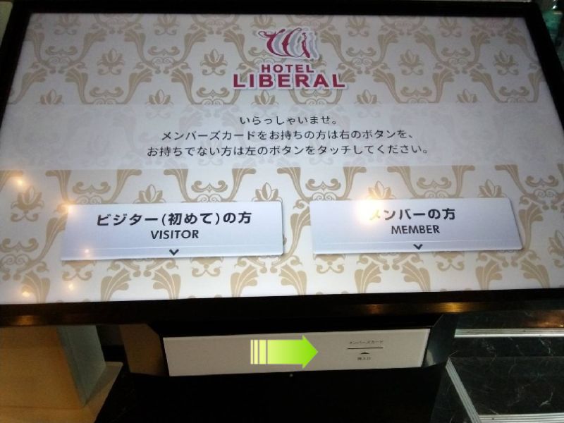 部屋を選ぶタッチパネルで部屋を【お選び戴く前に】読み取り口に挿入で